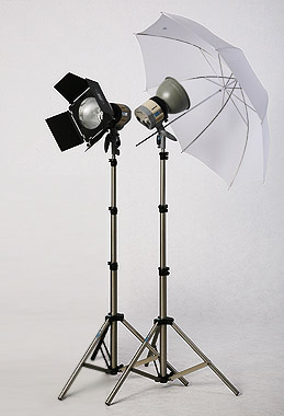 2 - Superlight Body 2 - 1000W H.Q. Bulb 2 - 7" Reflector 2 - 750 Air Cushioned Stand 1 - Barn Doors 1 - 40" White Umbrella